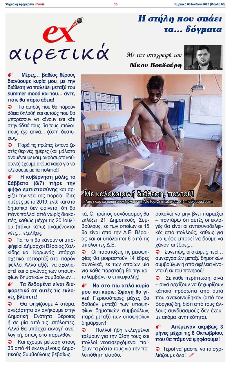 🚨 Για το τι θα κάνουν οι υποψήφιοι Δήμαρχοι Βέροιας Χαλκίδης και Κορωνάς υπάρχει σχετικό ρεπορτάζ στο παρόν φύλλο. Αλλά αξίζει να σχολιαστεί και ο αγώνας των υποψηφίων δημοτικών συμβούλων…